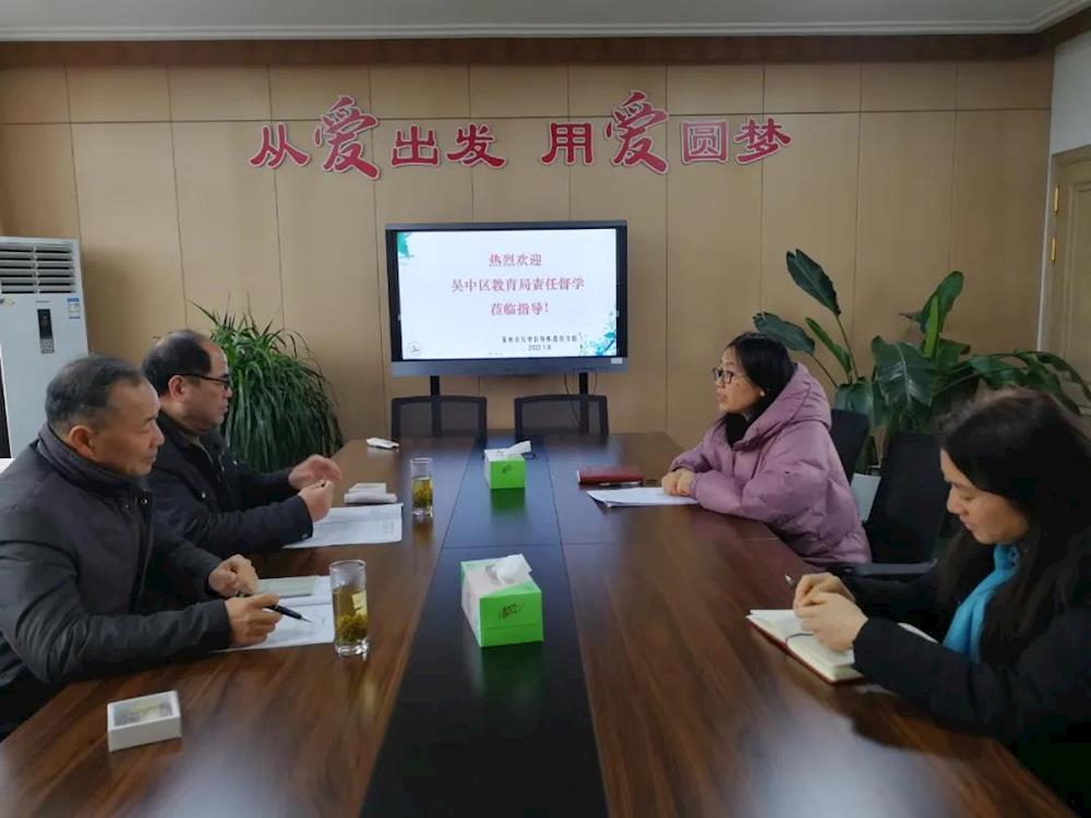 为了深化教育改革,落实双减政策,充分发挥教育督导在规范办校行为、引领学校发展中的作用,2022年1月6日,吴中区第一片区责任督学陈华校长、赵士元主任莅临吴中区特殊教育学校进行工作指导。