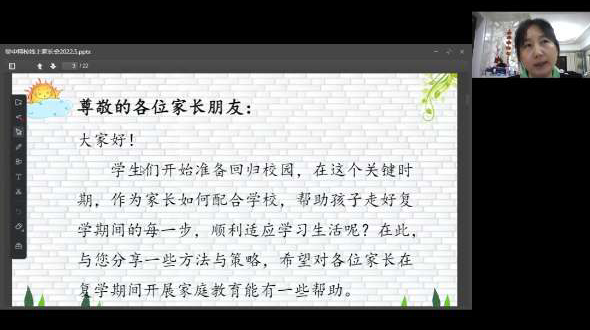 家长会上,各班班主任强调了复课后上下学以及校园活动等防疫安全要求,提醒家长做好返校心理建设,协助学生提前调整作息、调整心态,以积极的心态和良好的情绪返回校园。