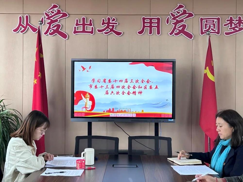 接着,姚里英同志带领大家学习了省委十四届三次全会、市委十三届四次全会和区委五届六次全会精神,号召全体党员教师以更加饱满的热情、更加昂扬的斗志、更加务实的作风,千方百计破难题、凝心聚力开新局,奋力开启学校高质量发展新篇章。