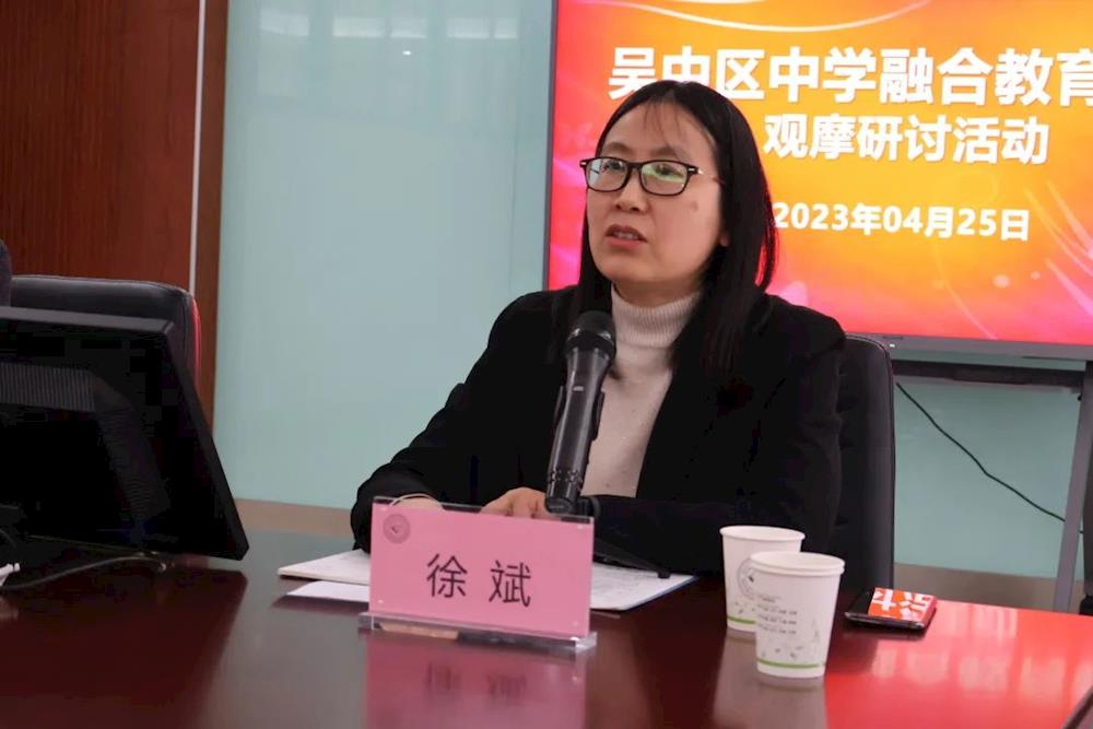 随后,吴中区特教指导中心常务副主任徐斌立足特殊教育普惠发展,对中学融合教育现状进行了分析,并就融合教育高质量发展提出了新期望。